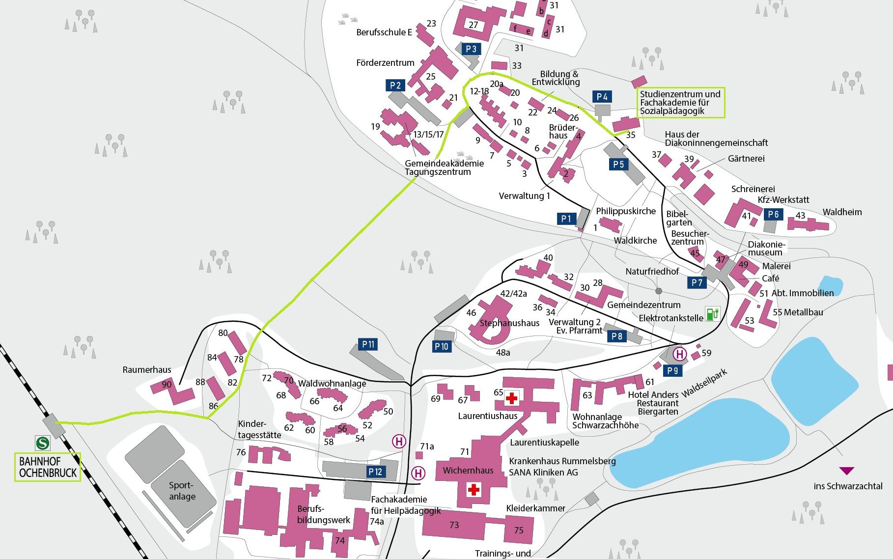 Der Fußweg zwischen Bahnhof Ochenbruck und unserer Fachakademie beträgt ca. 20 Min.
