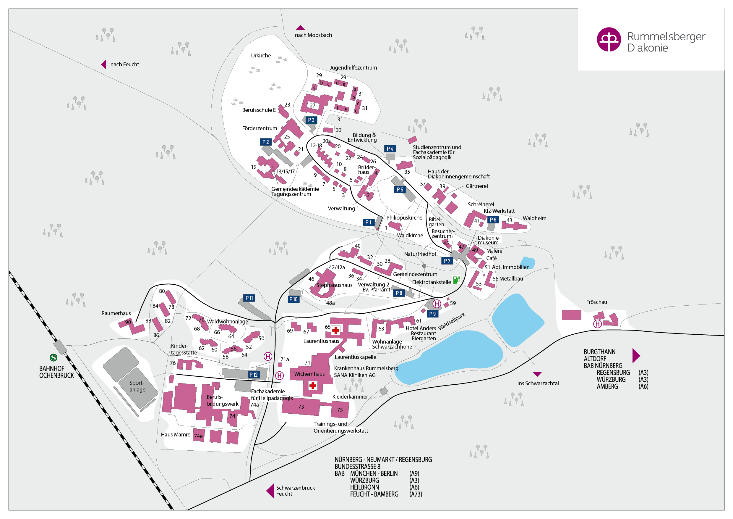 Achtung: Von Februar bis August 2026 ist wegen der Generalsanierung der Strecke "Nürnberg-Regensburg" der Ortsteil Rummelsberg nur mit dem Schienenersatzverkehr zu erreichen.