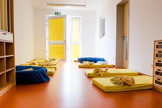 - In der Gestaltung unserer Tagesstruktur sowie beim Raumkonzept legen wir Wert auf den Wechsel von Bewegungs- und Ruhephasen. Jedes Kind hat die Chance, sich auch einmal auszuruhen.