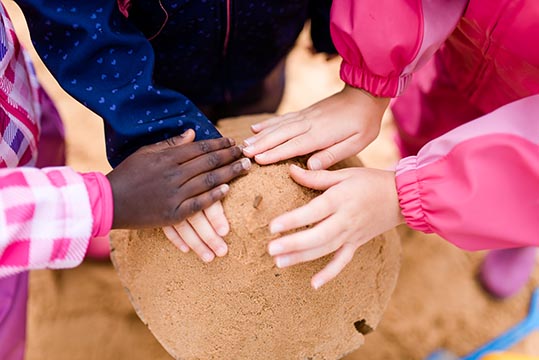 - Wir fördern jedes Kind individuell: Durch Spielen, Malen, Matschen, Experimentieren, Singen, Lesen, Bewegen, Kuscheln, Forschen und Entdecken. Die Kinder lernen durch Erfahren und Erleben.