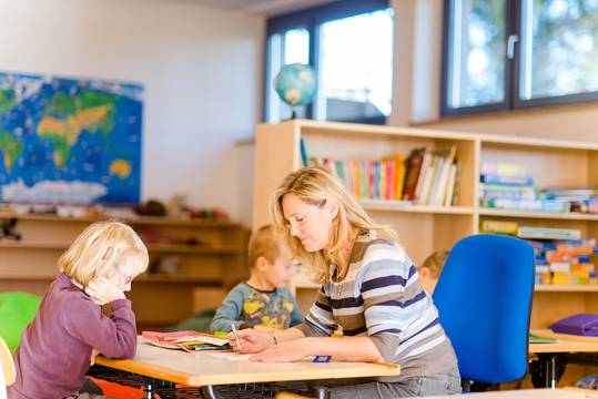 - Ruhe finden die Kinder zum Beispiel beim Lesen, Ausruhen oder bei ruhigen Spielen.