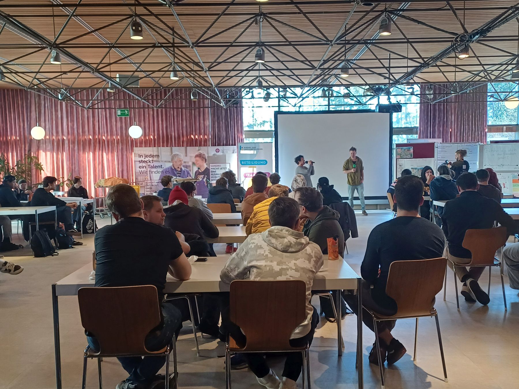 Der Tag begann mit einer gemeinsamen Begrüßung, die die Teilnehmenden auf einen produktiven Tag einstimmte. Anschließend fanden in zwei Workshop-Runden rund 220 junge Menschen – Auszubildende und Teilnehmende in der Berufsvorbereitung – die Gelegenheit, sich intensiv mit dem Thema „Leben in einer Demokratie“ auseinanderzusetzen.
