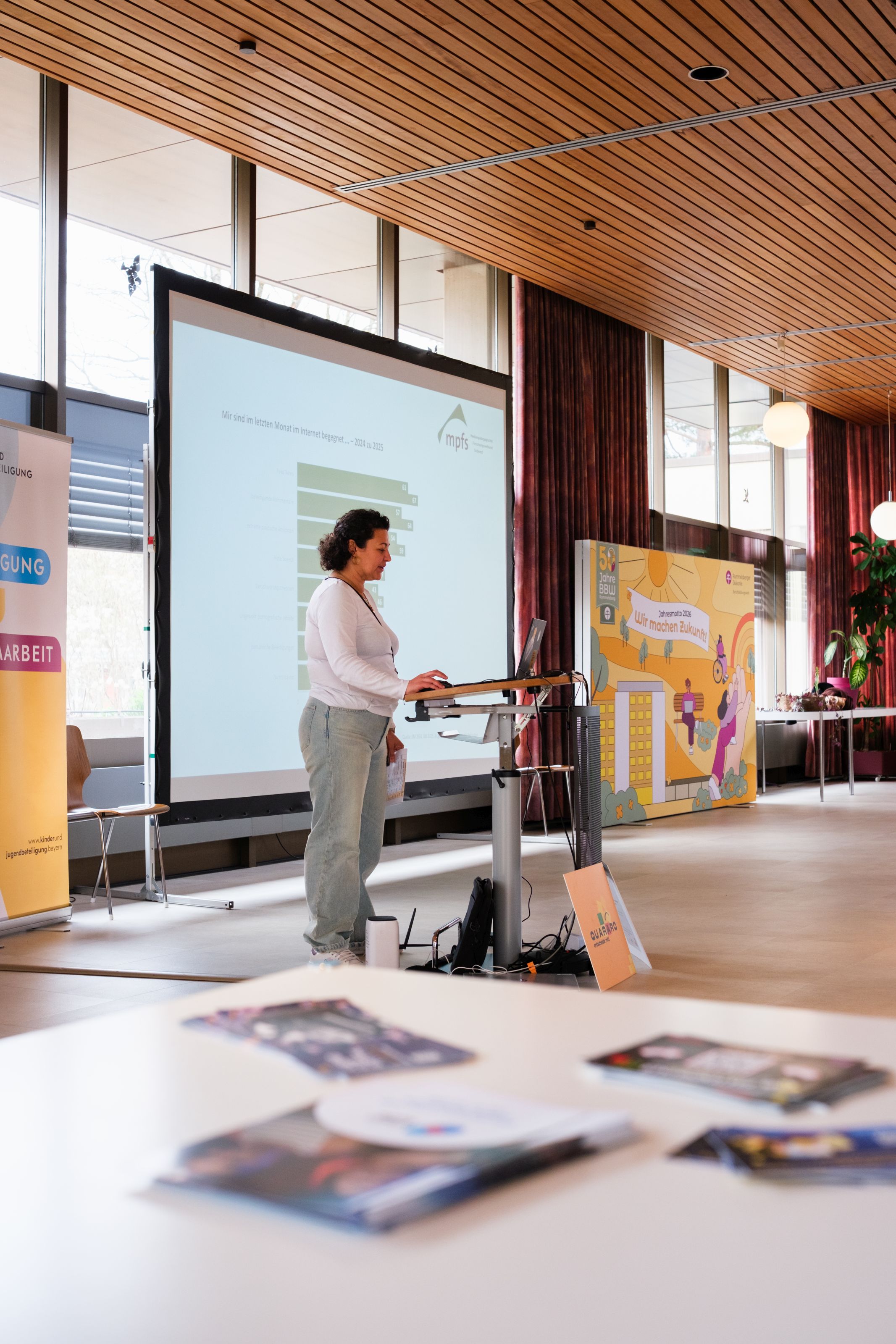 Neben den jungen Teilnehmenden, wurden die Mitarbeitenden geschult. Juliana Krolop von der Fach- und Servicestelle für Kinder- und Jugendbeteiligung unterstrich die Notwendigkeit, das Nutzungsverhalten junger Menschen zu verstehen. Wichtige Werkzeuge sowie Mut und Bewusstsein in der digitalen Welt wurde den Mitarbeitenden vermittelt. Paula Ludwig-Molitor vom Medienzentrum Parabol thematisierte die Erkennung von Falschinformationen und Deepfakes und betonte die Beziehungsarbeit im Umgang mit jungen Menschen und sozialen Medien. Beim Spiel „Fake or Real“ übten die Mitarbeitenden, echte von falschen Nachrichten zu unterscheiden. Sie platzierten nach Bauchgefühl die jeweilige „Fake“ oder „Real“-Wäscheklammer auf ausgedruckten Nachrichten. Später wurden die Ergebnisse aufgelöst und besprochen, was die Auswirkungen und den Einfluss von Fake News verdeutlichte.