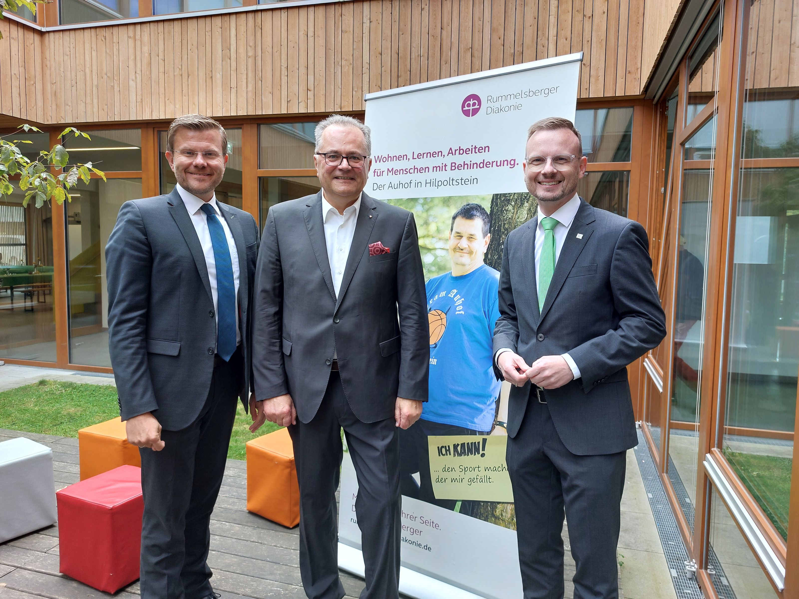 Rund 80 Gäste, darunter Nürnbergs Oberbürgermeister Marcus König, Bezirkstagspräsident Peter Daniel Forster, Bezirkstagspräsident Mittelfranken, sowie weitere Vertreter*innen aus der Politik, von engagierten Vereinen, der Rummelsberger Diakonie und natürlich Eltern, Ehemalige und Schüler*innen, würdigten die Schule als Vorzeigeprojekt für individuelle Förderung und gesellschaftliche Teilhabe.
