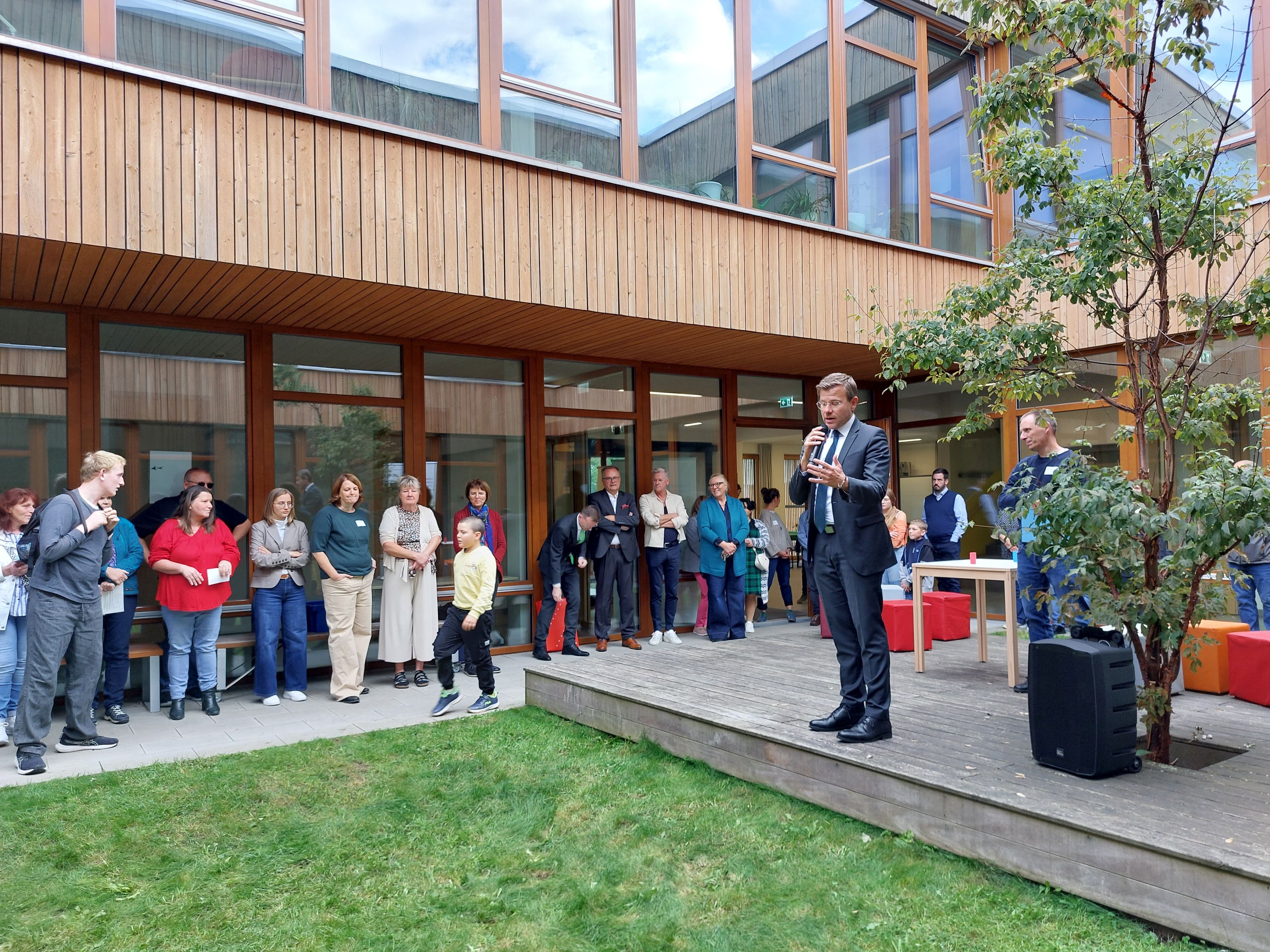 „Diese Schule ist weit mehr als ein Bildungsort – sie ist ein Ort der Herzenswärme. Der Bedarf für Angebote für Kinder mit Autismus steigt“, sagte Nürnbergs Oberbürgermeister in seiner Rede, „wir setzen alles daran, dass die Stadt soziale Teilhabe mitträgt.“
