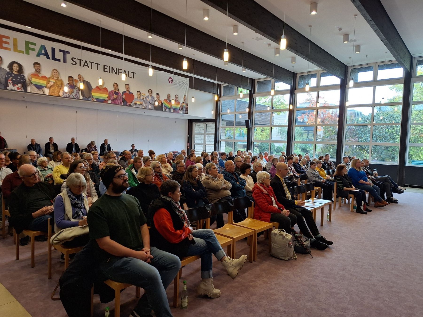 30. Oktober 2025Hilpoltstein – Am Auhof fand am 18. Oktober 2025 der alljährliche Angehörigen- und Betreuer*innentag statt. Der Aktionstag soll alle Angehörigen und Betreuenden darüber informieren, was im vergangenen Jahr passiert ist, aktuelle Entwicklungen darstellen und einen Ausblick für das kommende Jahr geben. Mit über 100 Teilnehmenden war die Aktion sehr gut besucht. Bereits der zu Beginn stattfindende Stehempfang sorgte für eine herzliche Atmosphäre und viele erste spannende Begegnungen.