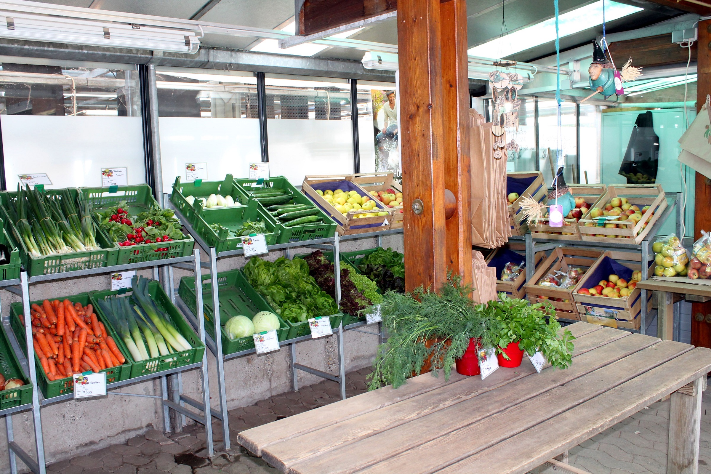 - Gemüse (Gurken, Tomaten, Salate, Möhren, Feldsalat usw.)