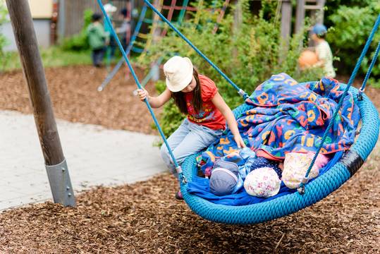 - Wir nutzen den nahen Stadtpark und die Spielplätze in der Umgebung zum Spielen und Erkunden.