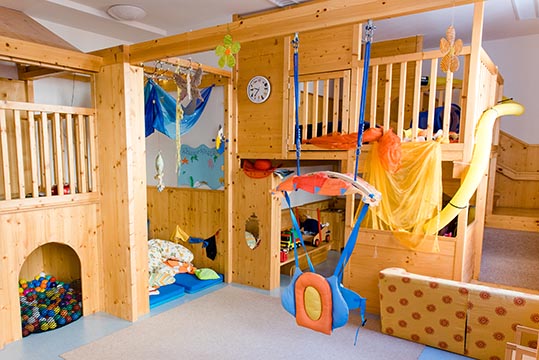 Die Räume sind nach dem Konzept „Würzburger Modell – Bauen für Geborgenheit“ mit viel Holz eingerichtet.