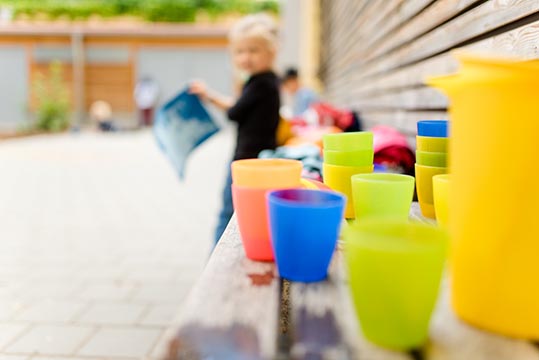 - Wir fördern jedes Kind individuell: Durch Spielen, Malen, Matschen, Experimentieren, Singen, Lesen, Bewegen, Kuscheln, Forschen und Entdecken. Die Kinder lernen durch Erfahren und Erleben.