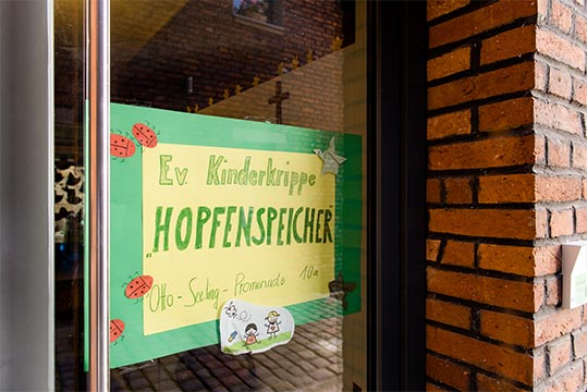 "Zusammen wachsen wir. Sind füreinander da." Das ist das Motto der Kinderkrippe Hopfenspeicher in Fürth. Wir begleiten Ihr Kind bei den ersten Schritten in der Welt. Als christliche Einrichtung ist uns die religiöse Erziehung besonders wichtig. Die Kinder lernen einen achtsamen Umgang miteinander.