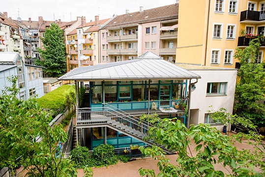 - Neubau im Innenhof: 2 Kindergartengruppen mit Turnhalle