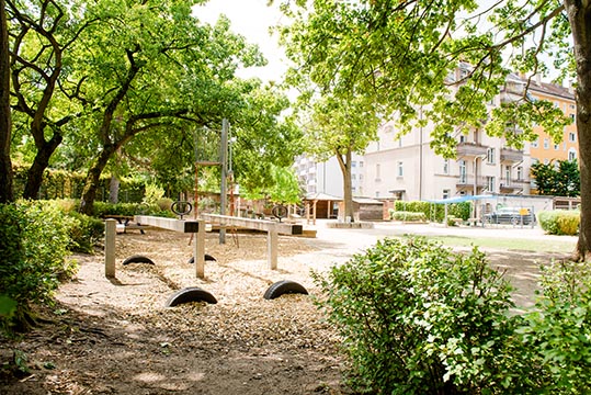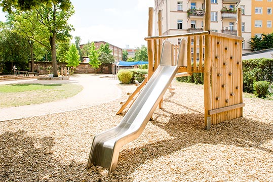 - Großer Garten fußläufig in 3 Minuten zu erreichen mit Sandkasten, Rutsche, Schaukel, Wippe und Wasserbereich