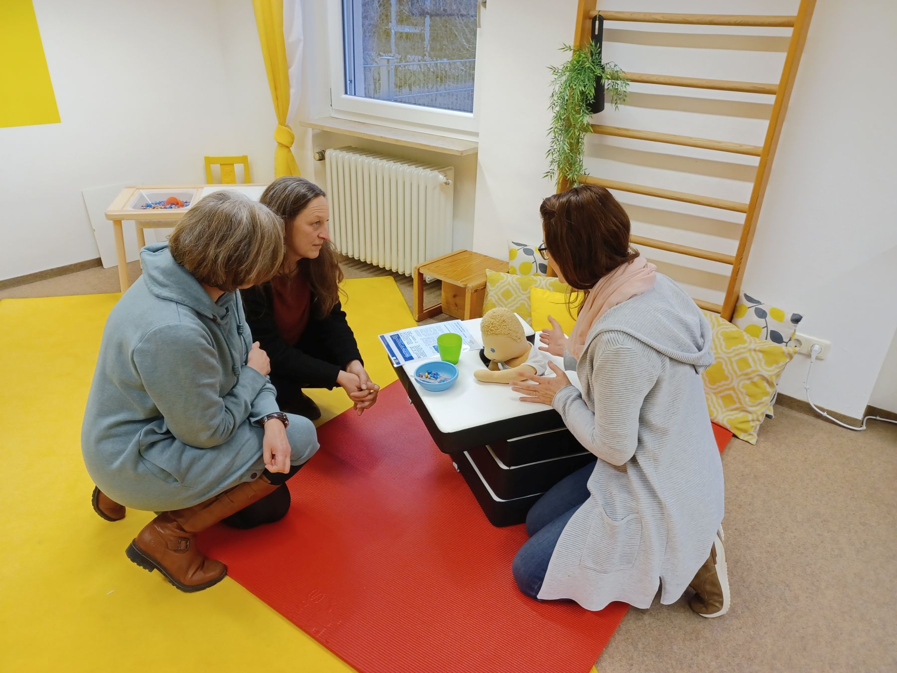 Einrichtungsleiterin Gerlinde Mayer sprach zu Beginn unter anderem über den Alltag in der Frühförderung, die Voraussetzungen für die Inanspruchnahme der Leistungen und die Rolle von Eltern und Kita-Personal. Bei der anschließenden Besichtigung der Räume gab es vieles aus der täglichen Arbeit zu entdecken: einen Bewegungsparcours, unterschiedliche Bildkarten und Lagerungsmöglichkeiten für logopädische Therapien oder das kinderfreundliche heilpädagogische Spielzimmer.