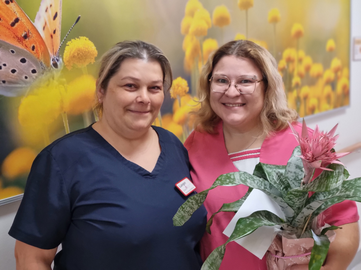 Diana Langer, Wohnbereichsleiterin und stellv. Pflegedienstleiterin, gratulierte Frau Timmler herzlich, bedankte sich für ihren herausragenden Einsatz und überreichte als Zeichen der Wertschätzung ein Blumenpräsent. Lisa Timmler war in den letzten zehn Jahren ausschließlich im beschützenden Wohnbereich tätig, da ihr die Arbeit mit an Demenz erkrankten Menschen besonders am Herzen liegt. „Die Arbeit im Team und das Eingehen auf Wünsche und Anregungen seitens meiner Vorgesetzten schätzte ich in dieser Zeit sehr,“ meinte Lisa Timmler an ihrem Jubiläum.