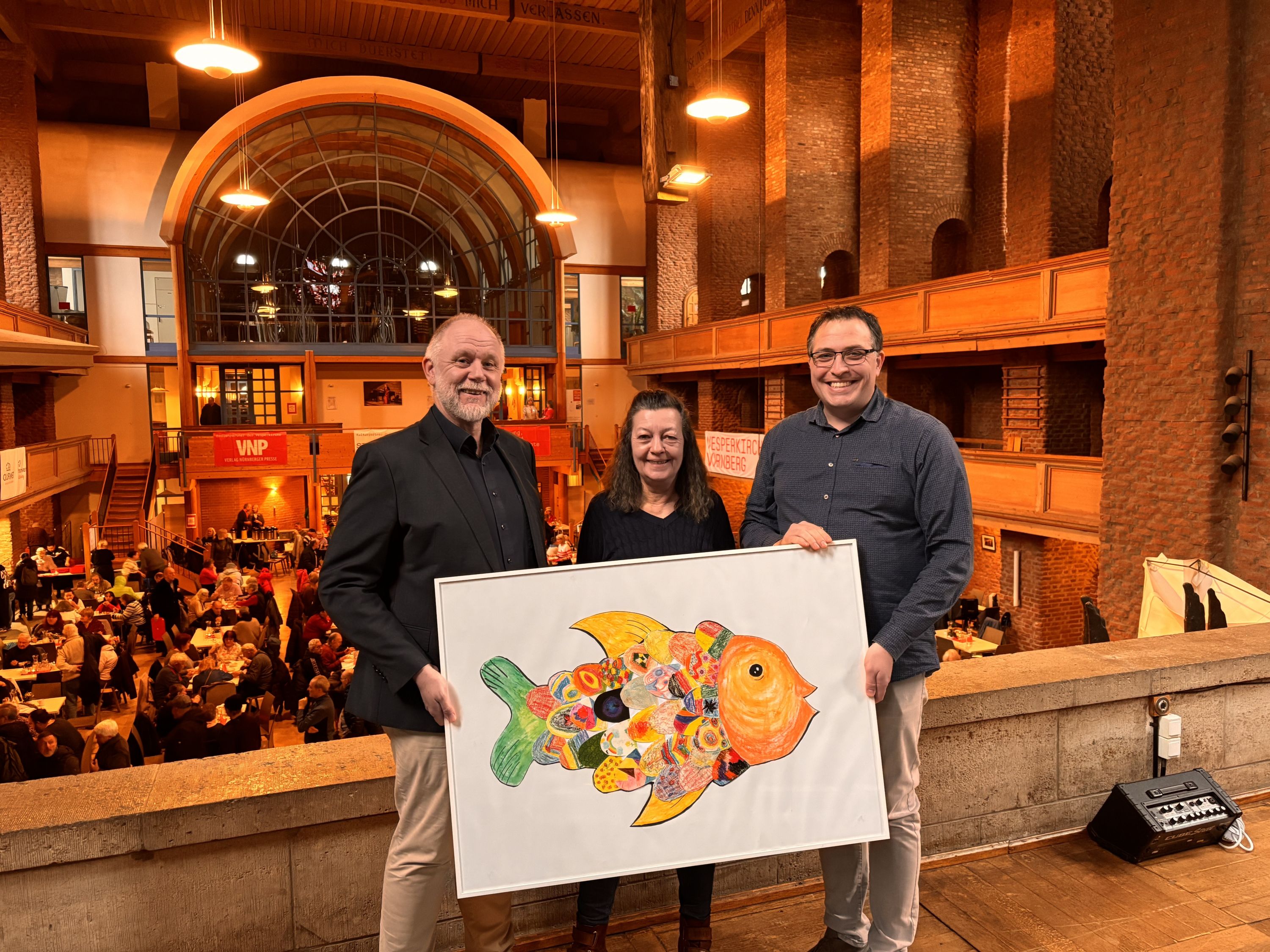 17. Februar 2026Nürnberg/Rummelsberg – Im stimmungsvollen Rahmen der diesjährigen Vesperkirche Nürnberg wurde am 11. Februar 2026 ein Zeichen für Gemeinschaft und gelebte Vielfalt gesetzt: Diakon Peter Barbian, Senior der Brüderschaft und Mitglied des Vorstands der Rummelsberger Diakonie, hat das Kunstwerk „Fisch“ aus dem inklusiven Projekt ARTogether entgegengenommen. Er hatte es zuvor erstanden – der Erlös kommt dem inklusiven Kunstprojekt Projekt zugute.