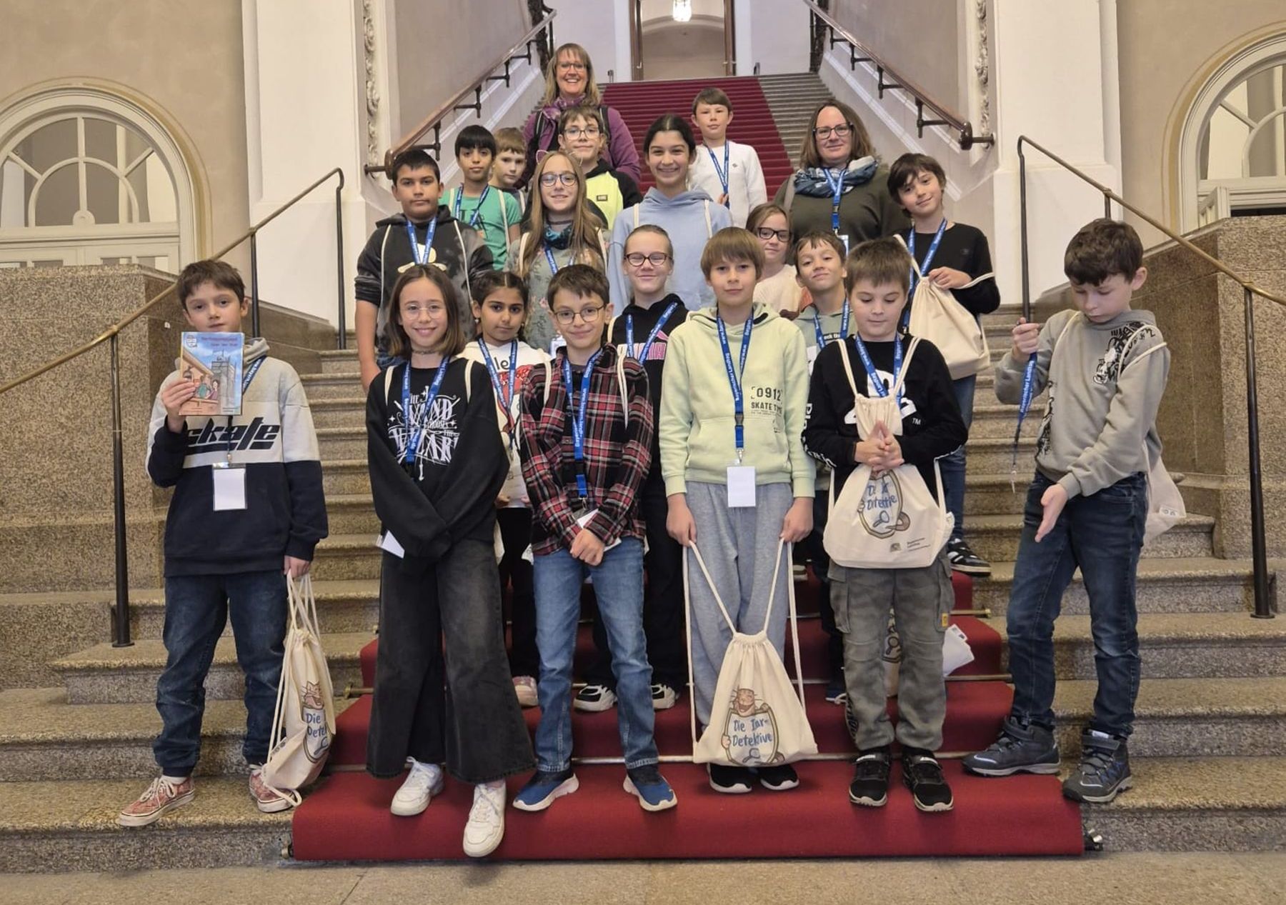 Der Besuch war die Belohnung für wochenlanges Engagement: Voraussetzung für die Bewerbung und damit Teilnahme am Projekt war, den Band (kostenlos bestellbar) im Vorfeld zu lesen. „Die Kinder haben sich intensiv vorbereitet – und waren heute zu Recht stolz, als eine der wenigen Klassen dabei zu sein“, sagt Schön. Den krönenden Abschluss bildete eine aufregende Tour durch das Maximilianeum, wo die Schüler*innen die Schauplätze der „Isar-Detektive“ hautnah erlebten.