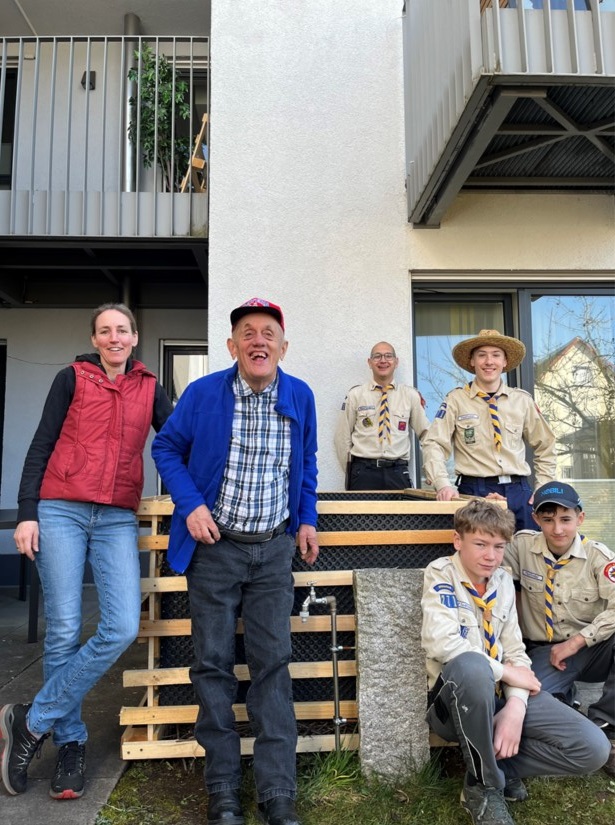 Bei strahlendem Sonnenschein begann das Team „Pumas“ der Pfadfinder, unter der Leitung von Martin Danninger, an einem Samstagvormittag mit Werkzeug und Tatendrang die Arbeiten. Unter den wachsamen Augen der Bewohner*innen wurde gemessen, geschraubt, gegraben und gesägt. In kurzer Zeit entstanden zwei Hochbeete, die nun auf die Bepflanzung im Frühling warten.