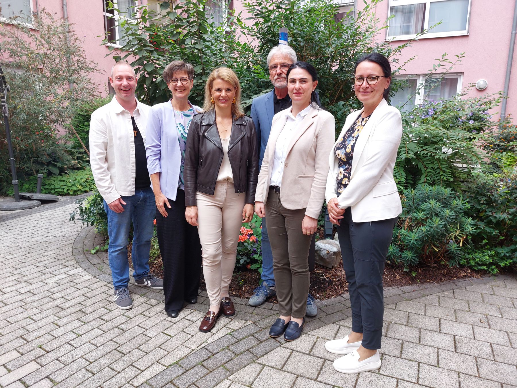 05. September 2025Nürnberg – Wie begegnen Einrichtungen und Träger dem zunehmenden Fachkräftemangel in der Altenpflege? Welche Strategien haben sich in der Praxis bewährt? Was muss passieren, damit das Pflegesystem nicht zusammenbricht? Diese Fragen besprach Katrin Staffler (CSU), Pflegebevollmächtigte der Bundesregierung und Mitglied des Bundestages, mit Diakonin Heidrun Martini, fachliche Leitung der Altenhilfe der Rummelsberger Diakonie, Mitarbeitendenvertreter Alexander von Hof und Sandra Schuhmann, Vorständin Soziales des Diakonischen Werks Bayern (DW). Drei Kernthemen sprachen die Diakonie-Vertreter*innen im Rummelsberger Stift St. Lorenz an.