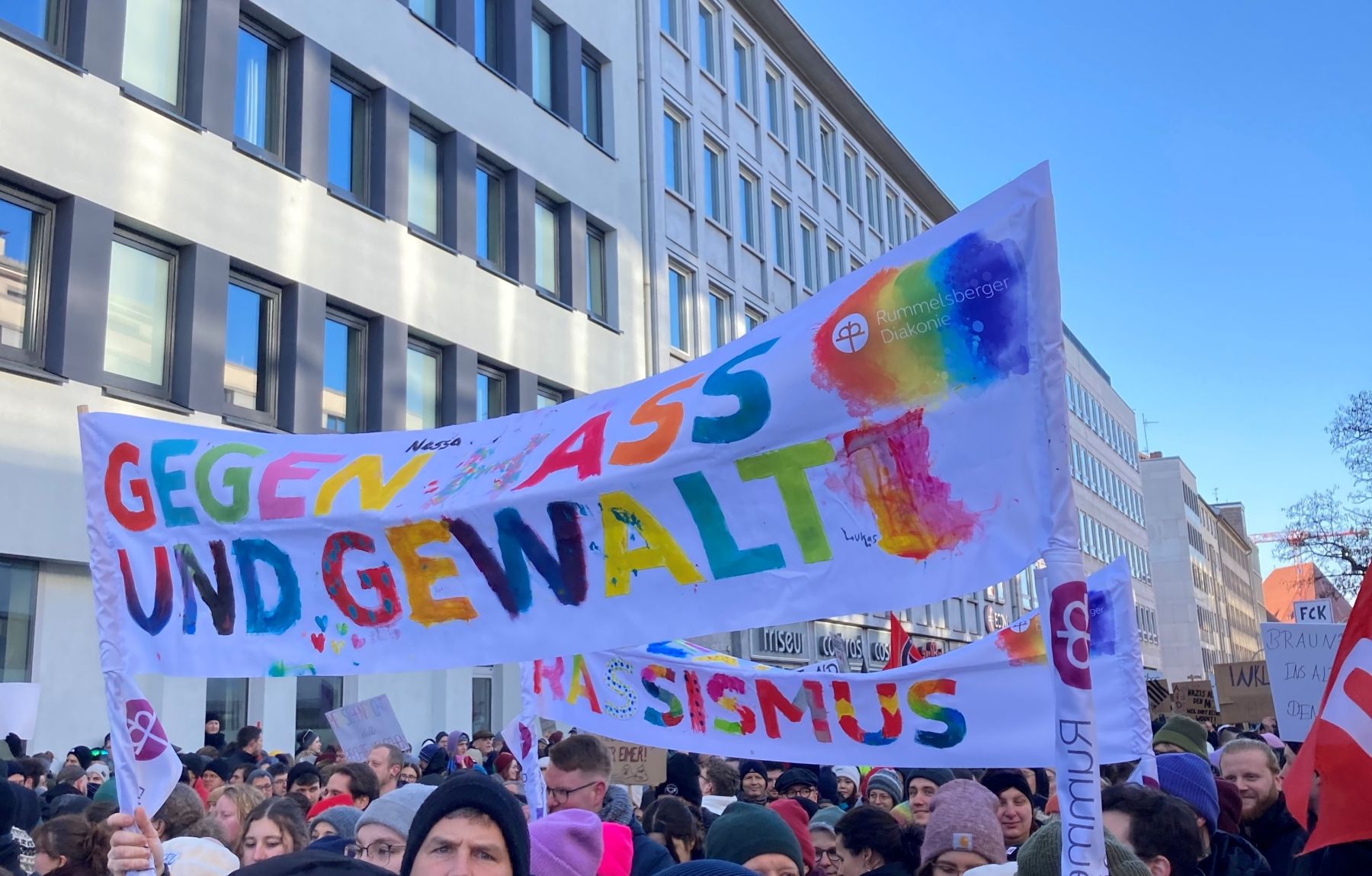 Rummelsberg – Die Rummelsberger Diakonie ruft dazu auf, am Samstag, 8. Februar 2025, an der Demonstration gegen Rechts in Nürnberg teilzunehmen. Es handelt sich nicht nur um ein lokales Ereignis, sondern auch um ein klares Signal für eine offene und demokratische Gesellschaft. „Die Würde des Menschen und die Achtung der Menschenrechte sind unverhandelbar. Es ist unsere gemeinsame Verantwortung, für eine Gesellschaft einzustehen, in der alle Menschen in Würde und Sicherheit leben können“, erklärt Diakonin Christine Meyer, Mitglied des Vorstandes und Älteste der Rummelsberger Diakoninnengemeinschaft.