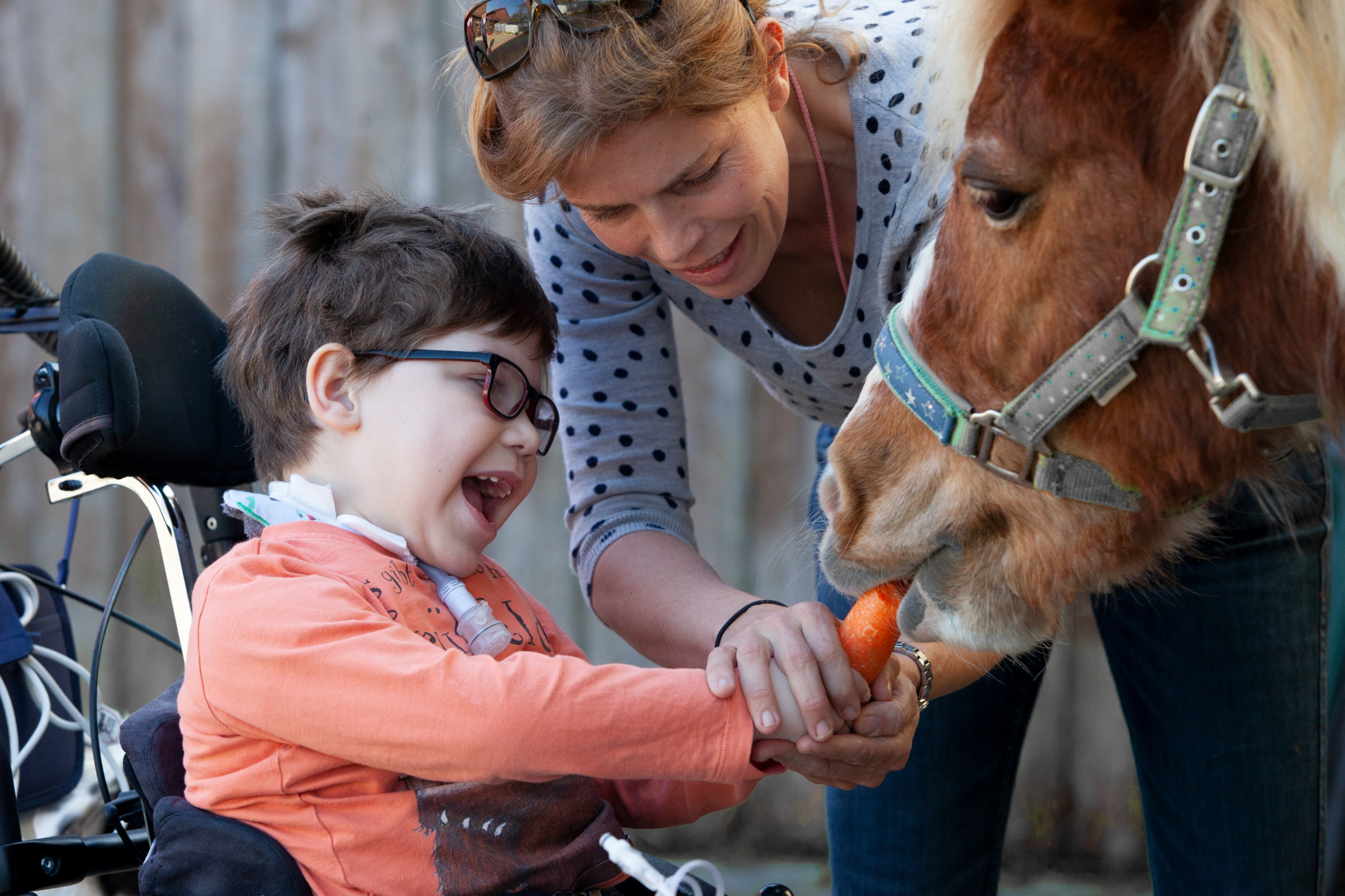 Benno kam mit Spina bifida zur Welt – im Sprachgebrauch „offener Rücken“ genannt. Im Laufe seines Lebens gesellten sich noch einige andere Diagnosen dazu, so dass er heute zwar stabil, aber ausgestattet mit Beatmungsmaschinen, Absauger, Sauerstoff und Rollstuhl unterwegs ist. Benno kommt regelmäßig zum therapeutischen Reiten auf den Therapiehof Leila, was ihm sichtlich Freude bereitet. Durch den Bewegungsrhythmus des Pferdes lernt Benno sein Gleichgewicht zu halten. Durch seine eigene Anstrengung bildet er so im Rücken Muskulatur und seine Stabilität im Rumpf wird gefördert und verstärkt. Dies hilft ihm, frei und stabil zu sitzen. Gerade bei seiner vorhandenen Skoliose trainiert er beim Reiten alle Muskelgruppen.