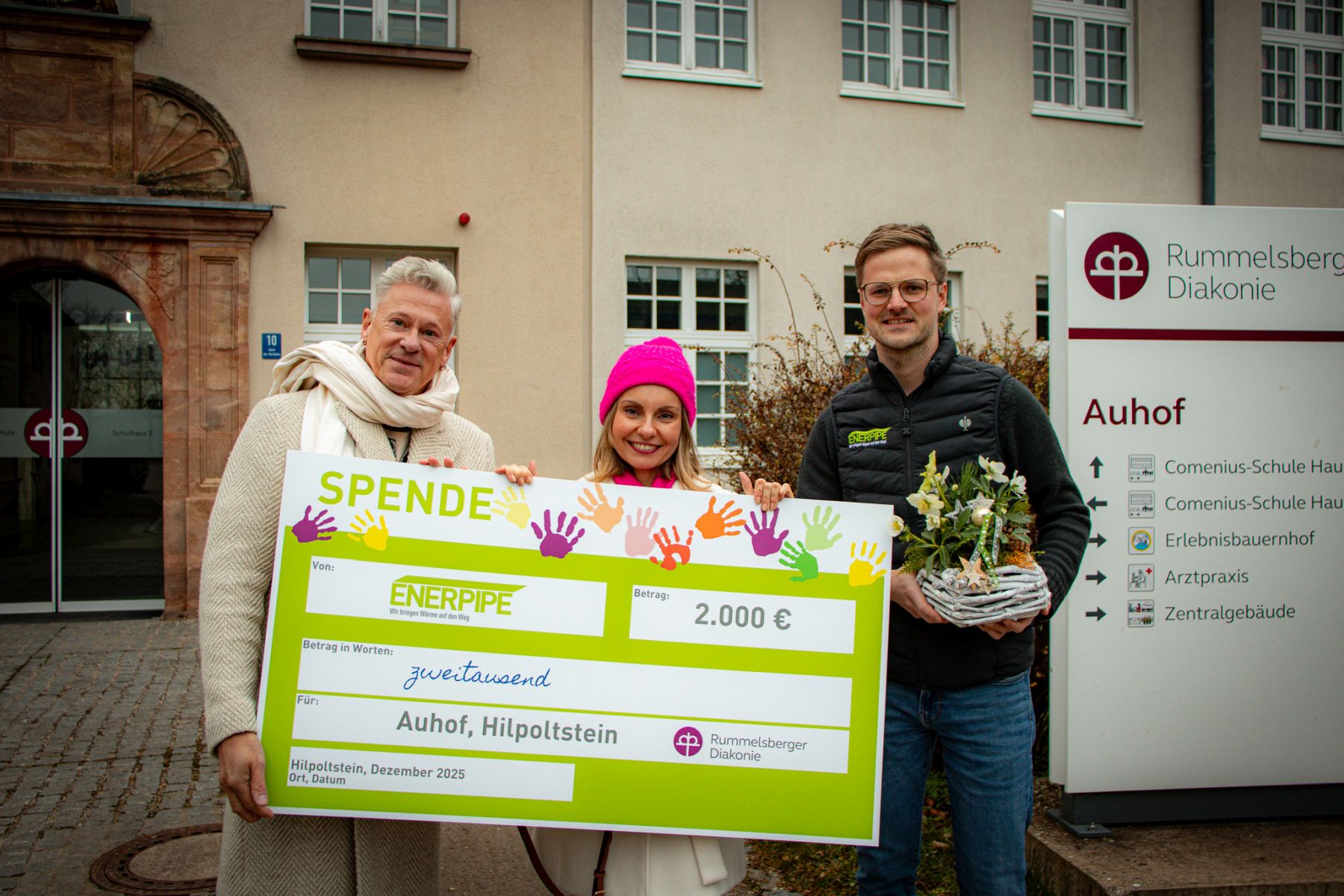 Am Montag, 15. Dezember 2025, überreichte Markus Euring, der Geschäftsführer der ENERPIPE GmbH, eine Spende in Höhe von 2.000 Euro an den Regional- und Einrichtungsleiter Andreas Ammon sowie Eva Adamaschek, Referentin Fundraising der Rummelsberger Diakonie.