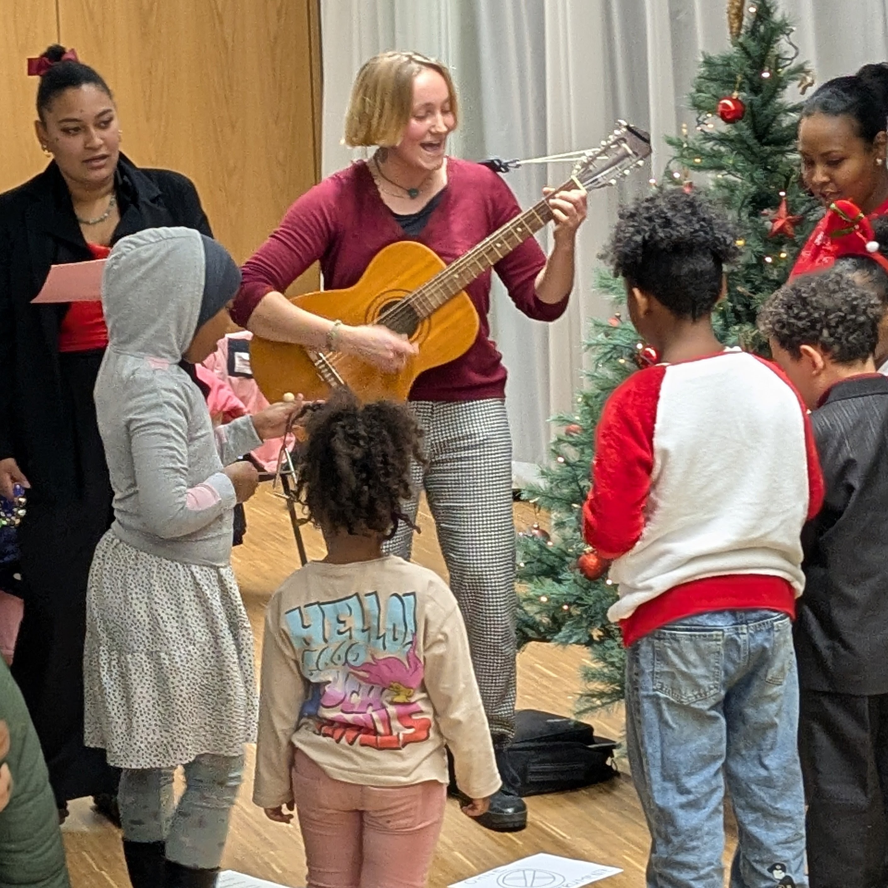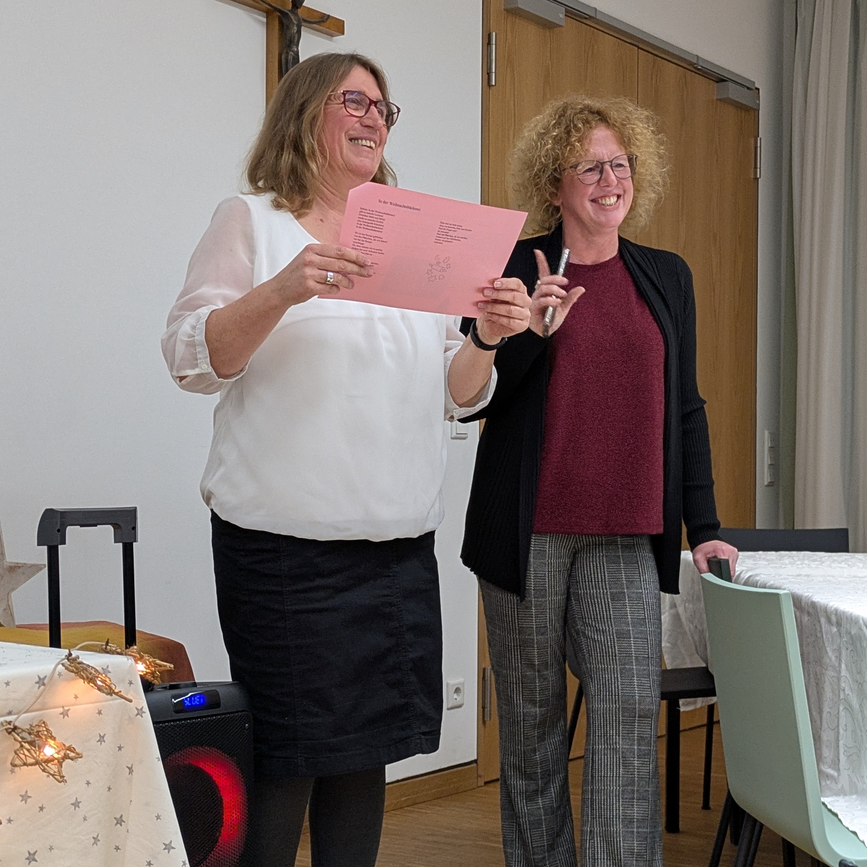 Ein Höhepunkt war der Beitrag der Teilnehmerinnen des Musikprojekts: Sie sangen dem Christkind ein selbstgeschriebenes Lied. Natürlich durften auch Geschenke nicht fehlen – für Groß und Klein. Vor allem aber war diese Feier ein Geschenk an sich: Zeit miteinander, Gemeinschaft erleben und spüren, dass niemand allein ist.